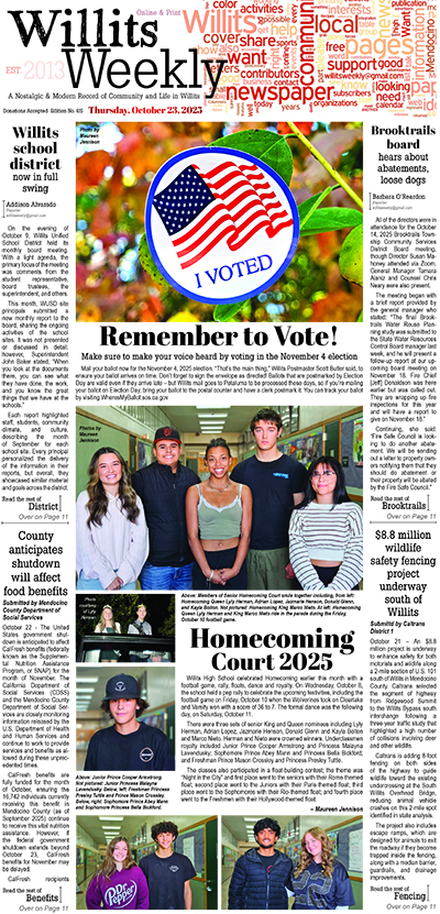 707-459-2633 | 707-972-7047 email: willitsweekly@gmail.com